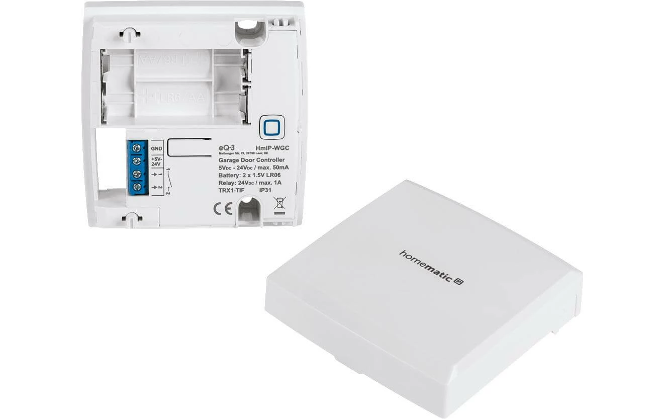 – Commande pratique de la porte de garage directement sur l’appareil, par tĂ©lĂ©commande sans fil, via l’application Homematic IP ou par la voix (assistant vocal requis)