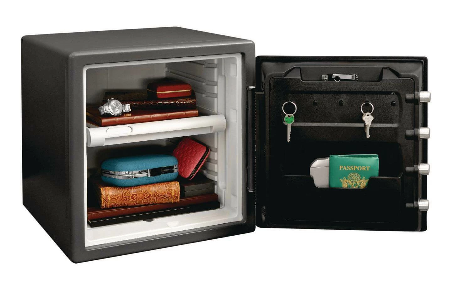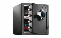 Capacité de résistance: Protection contre les incendies, étanche, Type de serrure de sécurité: Cadenas à code, Volume utile total: 33.61 l, Couleur de détail: Gris, Utilisation du coffre: Protection contre les effractions, Nombre de boulons: 4