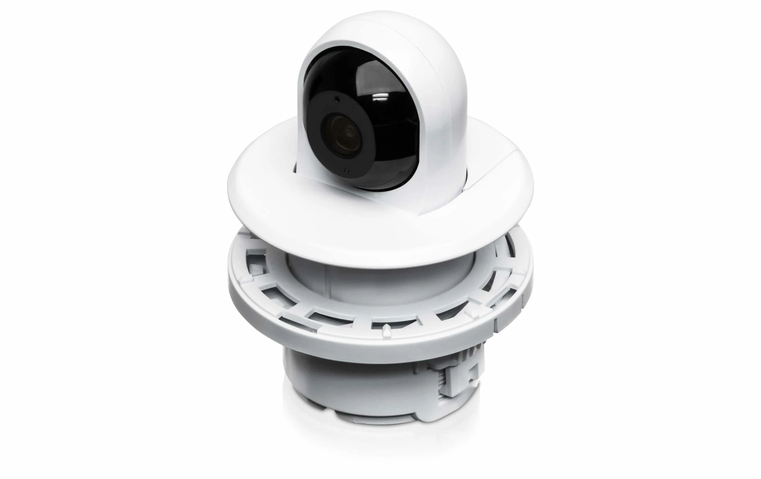 – Comprend un ancrage pour le montage sur cloison sèche, un support pour le montage sur dalle de plafond, une vis de sécurité optionnelle qui bloque la caméra en place pour le montage
